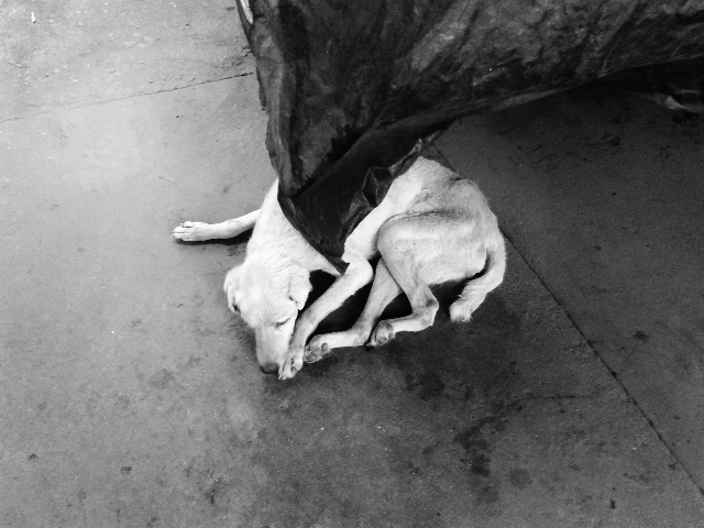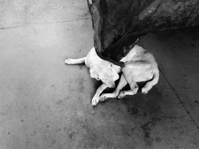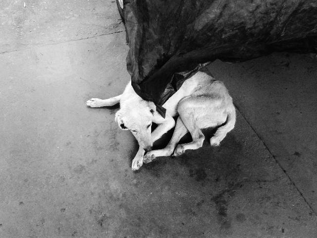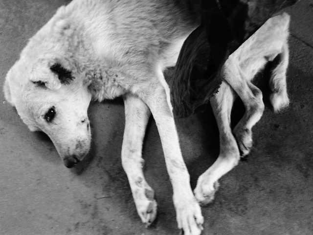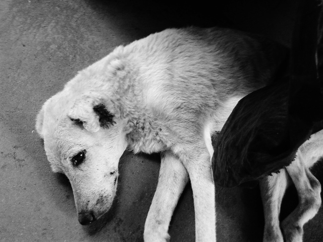 Je me suis accroupie devant toi pour te caresser la tête, toucher ton poil si doux, si blanc aussi à cause du poids de l’âge. Je t’ai murmuré que je t’aimais, qu’on t’aimait tous, qu’on ne voulait pas le faire, mais qu’on ne pouvait pas te regarder pourrir sous nos yeux. On ne pouvait plus te regarder souffrir de la sorte sans pouvoir rien y faire.