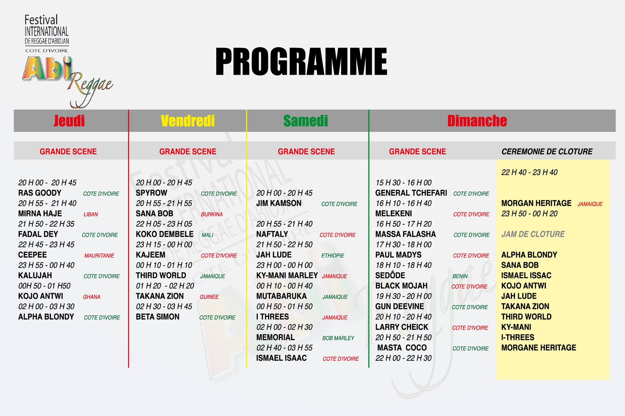 Aujourd’hui se déroulait au Palais de la culture d’Abidjan (Côte d’Ivoire) la cérémonie d’ouverture du Festival international de Reggae d’Abidjan ou Abi Reggae.